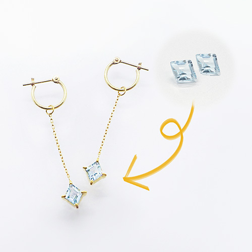お客様のご要望に合わせて、2珠ずつのピアスを作成。チェーンでぶら下げてゆらゆら揺れるタイプです。