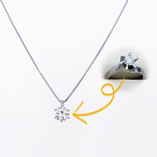 お仕事の関係でリングを着ける機会が少ないお客様。ペンダントにリフォームのご依頼を承りました。